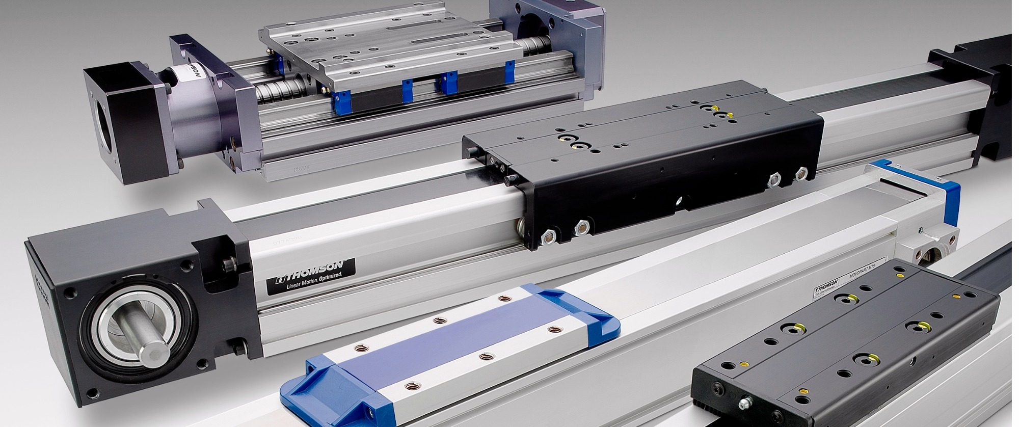 Thomson直線模組 Thomson直線模組擁有超過100年的直線運(yùn)動(dòng)產(chǎn)品生產(chǎn)經(jīng)驗(yàn)。 Thomson直線模組目前挑選了各品牌中競(jìng)爭(zhēng)力的產(chǎn)品,組成了代表當(dāng)今高水平的產(chǎn)品系列。產(chǎn)品系列涵蓋自小,緊湊直至大,可靠的直線運(yùn)動(dòng)單元。 Thomson擁有豐富的滾珠絲杠驅(qū)動(dòng)和皮帶驅(qū)動(dòng)單元,采用了滾珠導(dǎo)軌、滑軌、導(dǎo)輪等各種導(dǎo)向技術(shù),設(shè)計(jì)用于惡劣的工作環(huán)境,可滿足您的高速或高精度系統(tǒng)對(duì)直線運(yùn)動(dòng)的需求。